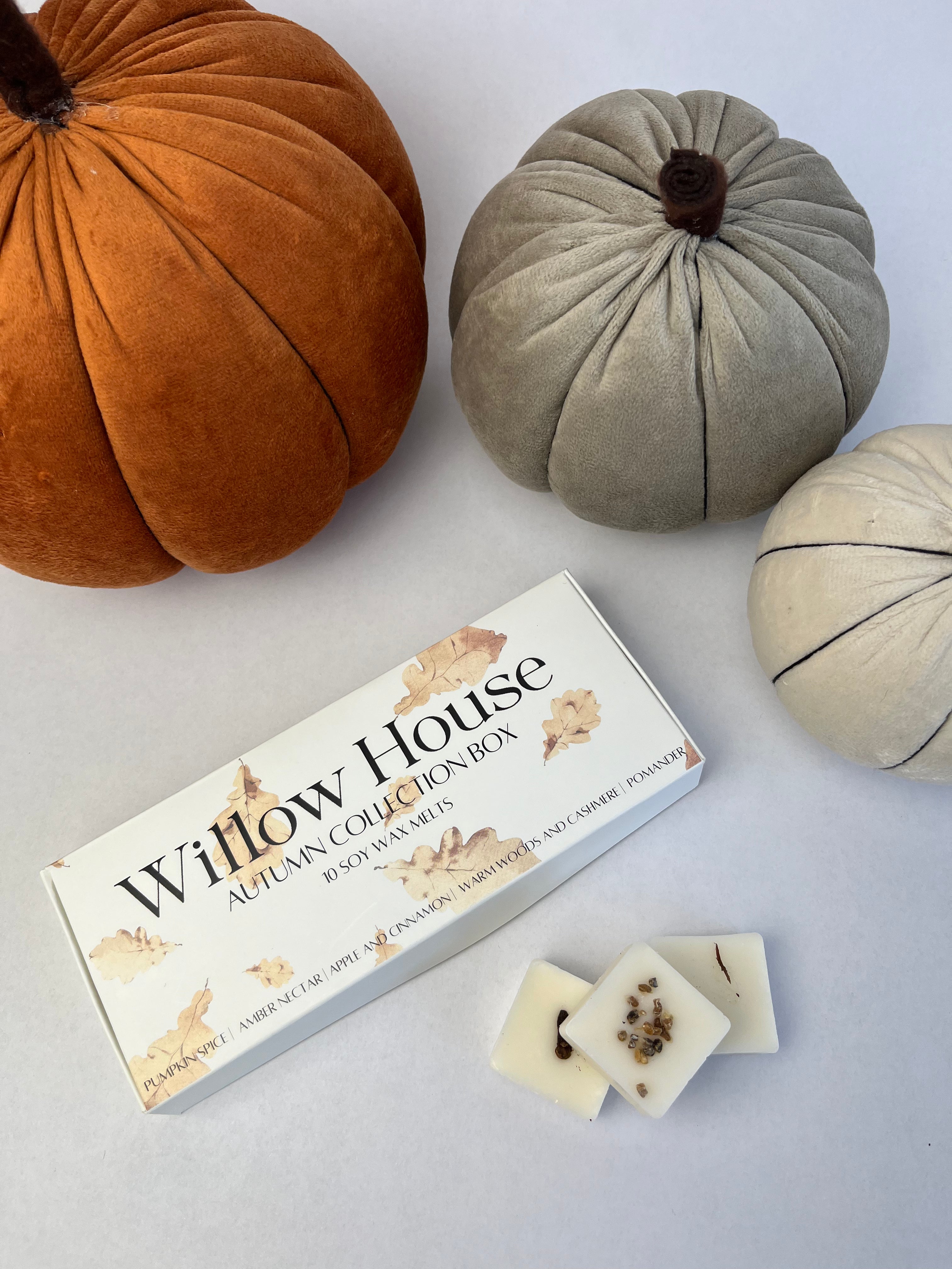 This limited-edition box includes 10 soy wax melts in 5 autumn-inspired scents (2 of each): Pumpkin Spice, Apple & Cinnamon, Amber Nectar, Warm Woods & Cashmere, and Pomander.